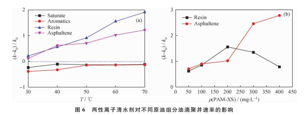 圖6兩性離子清水劑對(duì)不同原油組分油滴聚并速率的影響