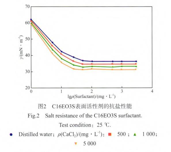 圖2 C16EO3S表面活性劑的抗鹽性能