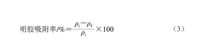 參考Tian Yan等的方法,并稍作改動。將1.3.2節(jié)新鮮制備的乳液在20 ℃下以12 000 r/min離心30 min后,將油滴和吸附在油滴上的蛋白質(zhì)從水相中分離出來。隨后,用注射器抽取離心管底部的溶液,并用0.22 μm濾膜過濾。明膠吸附率按式(3)計(jì)算:
