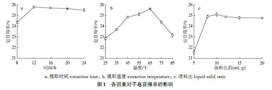2.1水浸提肥皂莢皂苷的單因素試驗(yàn)結(jié)果