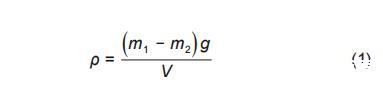 式中,m_1為懸掛于電子天平底部密度探頭的質量,g;m_2為密度探頭浸入到待測液體內電子天平的數(shù)值,g;g為重力加速度,取9.81 m/s^2;V為探頭的體積,m^3。