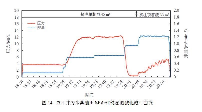 圖14 B-1井為米桑油田Mishrif儲層的酸化施工曲線