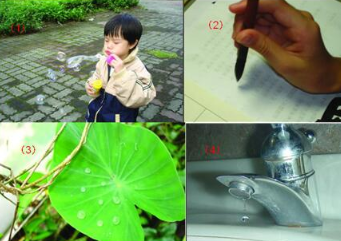 細心觀察蓮花、芋頭葉及甘藍菜的葉面,我們發(fā)現(xiàn)水珠可以在這些葉面上自由的滾動。自來水筆的墨水不會因地心引力而滴出、毛筆上的墨汁不會掉下來。水滴在水龍頭下會慢慢形成一個球狀的液滴再滴下來,肥皂泡泡吹出來不會破。這些現(xiàn)象都是和表面張力有關(guān)。水珠能在荷葉上自由的滾動,這是因為水在葉面上的接觸角介于130~160度之間,接觸角大顯示出水珠不易潤濕表面。而自來水筆的墨水不會滴出來以及毛筆的墨汁不會掉下來是因為液體的毛細管現(xiàn)象。因為毛細管的水與管壁的接觸角小于90度,表示水與管壁的附著力較水分子間的內(nèi)聚力大,由于附著力與表面張力的相互作用,一垂直毛細管端的液滴會被吸住,并和重力達到平衡,這就是自來水筆的墨水不會因地心引力而滴出的原因。而便宜的原子筆往往因表面張力的控制不良而不順暢或油墨溢出。毛筆上的墨汁不會掉下來也是毛細現(xiàn)象的關(guān)系。