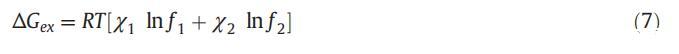 活度系數(shù)以及膠束摩爾分?jǐn)?shù)也可用于使用式(7)[56]計(jì)算混合的過(guò)量自由能(ΔGex):