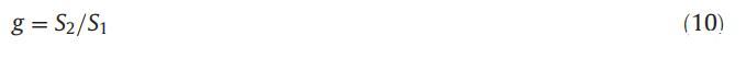 在迄今為止研究的所有情況下,無(wú)論是在純水中還是在二甘醇-水二元混合物中,我們觀察到電導(dǎo)在cmc前后以不同的速率增加。在cmc以下,兩親性分子是非締合的,表現(xiàn)為1:1電解質(zhì),并遵循Debye-Huckel-Onsager方程[58,59],而在cmc以上,表面活性劑分子聚集并形成膠束[58,60]。cmc以上純CET、[C10min][Cl]和CET+[C10min][Cl]混合物的電導(dǎo)率急劇下降是由于膠束的形成導(dǎo)致材料的質(zhì)量急劇增加,表面電荷密度凈降低。根據(jù)電導(dǎo)率與摩爾濃度圖中膠束后區(qū)域(S2)與膠束前區(qū)域(S1)中兩條相交直線的斜率之比計(jì)算g值,并可使用公式(10)[61]計(jì)算: