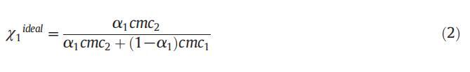 在理想狀態(tài)下,膠束摩爾分?jǐn)?shù)(χ理想)已通過(guò)公式(2)[50]計(jì)算得出: