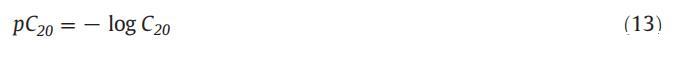 為了計(jì)算吸附效率,重要的是要知道產(chǎn)生最大吸附量的兩親分子的摩爾濃度。最大吸附量出現(xiàn)在表面張力降低到20mn·m時(shí)?1[64]和C20是該點(diǎn)的摩爾濃度。用pC20表示的兩親分子的吸附效率如下所示: