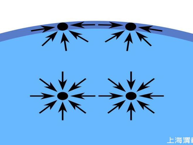 在液體與氣體接觸的表面層,表面張力也會(huì)出現(xiàn)表面收縮的趨勢。