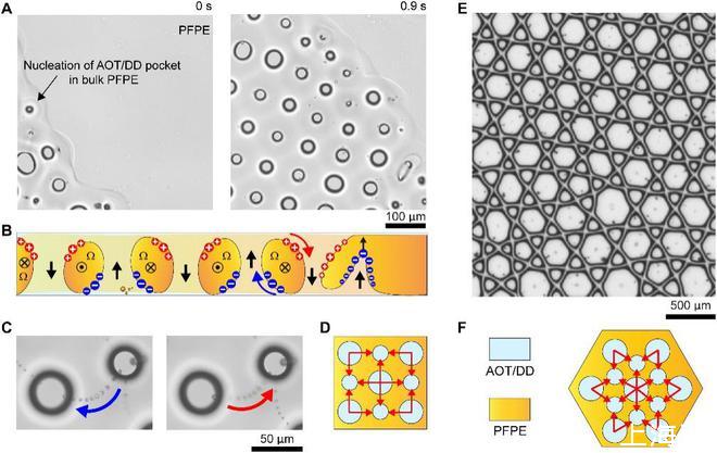 在這項(xiàng)研究中,團(tuán)隊(duì)將油與多種具有不同介電常數(shù)和電導(dǎo)率的液體混合后,通過施加電場,界面發(fā)生剪切,會(huì)脫離平衡狀態(tài),產(chǎn)生有趣的結(jié)構(gòu)。液滴形成了許多出乎意料的圖案,可被控制成為方形或六邊形,每條邊都是筆直的,這在自然界中幾乎是不可能的。