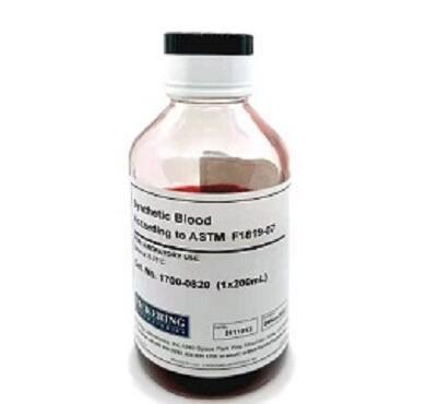 Pickering Laboratories科學(xué)家根據(jù)標(biāo)準(zhǔn)方法ASTM F1819-07,ASTM F1670,ASTM F1862和ASTM F2100配制的一種產(chǎn)品,具有最接近人體真實血液的表面張力和粘度的人工合成血液。保證了實驗的準(zhǔn)確性。