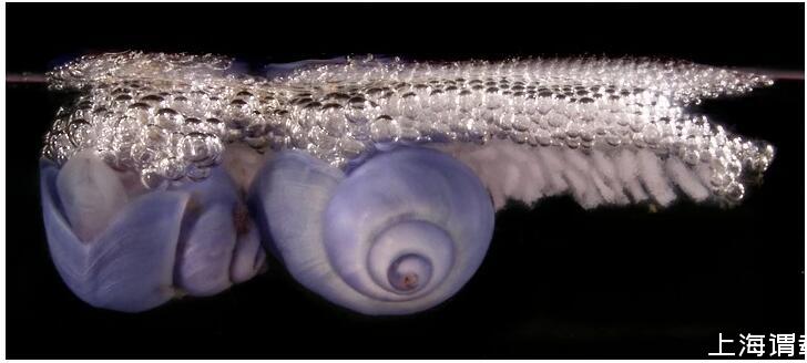 氣泡和泡沫在自然界中也有實(shí)際用途。圖中展示的是一種浮掛在海中生活的紫蝸牛,泡泡包裹著它們分泌的粘液形成浮筏使,它們以捕食生活在水面的小生物為生。丨圖源:Dorling Kindersley;Denis Riek