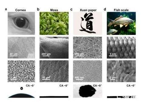 文章介紹了經(jīng)過(guò)億萬(wàn)年進(jìn)化后自然界中選擇留下的各種優(yōu)異超鋪展表面,包括動(dòng)物角膜、宣紙等。自然界中超鋪展表面的優(yōu)異性能直接決定了其正常作用的發(fā)揮甚至其生理功能。這些自然表面均使用了微納復(fù)合的多尺度結(jié)構(gòu)來(lái)實(shí)現(xiàn)超鋪展性能;從分子尺度的表面自組裝水分子結(jié)構(gòu)引起的新的親疏水界線(65°)到納米結(jié)構(gòu)和微觀結(jié)構(gòu)在超鋪展過(guò)程中的宏觀各自作用,綜述了超鋪展本質(zhì)機(jī)理研究的最新進(jìn)展;進(jìn)一步總結(jié)了常用的超鋪展表面制備方法、介紹了超鋪展表面的應(yīng)用領(lǐng)域,提出了超鋪展體系,總結(jié)了該領(lǐng)域存在的挑戰(zhàn)。