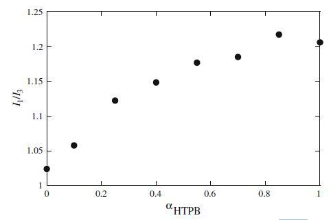 圖7 HTPB+Mega-10混合體系中芘熒光強(qiáng)度的I1/I3比與αHTPB的關(guān)系圖