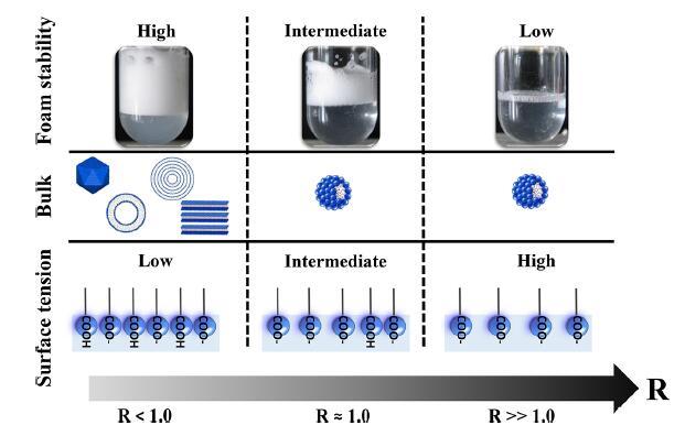圖6.說(shuō)明摩爾比(R)、泡沫穩(wěn)定性、本體自組裝和表面性質(zhì)之間聯(lián)系的示意圖。