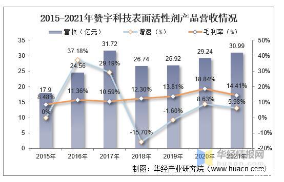 贊宇科技集團(tuán)股份有限公司是專業(yè)從事表面活性劑、油脂化學(xué)品研發(fā)制造和洗化產(chǎn)品代加工的高新技術(shù)企業(yè)。長(zhǎng)期以來,公司憑借先進(jìn)的理念、科學(xué)的管理以及技術(shù)和人才的優(yōu)勢(shì),堅(jiān)持自主創(chuàng)新,走科技成果產(chǎn)業(yè)化的發(fā)展道路,現(xiàn)已成為國(guó)內(nèi)研究和生產(chǎn)表面活性劑的龍頭企業(yè)之一。據(jù)資料顯示,2021年公司表面活性劑產(chǎn)品營(yíng)收為30.99億元,同比增長(zhǎng)5.98%,毛利率為14.41%。