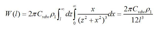 若取l為物質(zhì)本體內(nèi)分子間的距離d11,且兩半無限體為同一種物質(zhì)時(shí),則上式的互作用勢(shì)變?yōu)椋ㄈ〗^對(duì)值