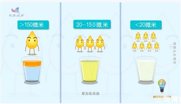 油是怎么存在水中的?油在水中的存在形式,根據(jù)油滴的粒徑,可以分為三類,油滴粒徑大于150微米稱為“浮油”,這也是油進(jìn)入水體的主要存在形式;油滴粒徑在20-150微米之間稱為“分散油”;油滴粒徑小于20微米的稱為“乳化油”。不管是表面活性劑穩(wěn)定的油滴,還是無(wú)表面活性劑穩(wěn)定的油滴,極小的乳化油以油包水或水包油的形式懸浮于水中。