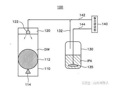 首先,當利用去離子水的清洗工序完成后,針對晶片的干燥工序啟動時,升降機被驅動,使上述晶片從去離子水慢慢向上移動。如以上所述,根據本發(fā)明的晶片干洗系統(tǒng)在晶片的表面均勻地添加了異丙基,采用醇基蒸氣噴射,具有使用適量異丙基醇蒸氣使晶片干燥良好的優(yōu)點。此外,根據本發(fā)明的晶片干洗系統(tǒng)利用馬蘭戈尼效應去除晶片表面存在的脫二熱水,因此在干燥工藝完成后晶片上不會出現(xiàn)水斑等;使優(yōu)質的半導體元件生產成為可能。以上說明了本發(fā)明參考可取的實施例,在本發(fā)明的技術思想范疇內,可以進行各種改良或變形,而這些改良或變形也屬于本發(fā)明,這一點,是可以認知的,為了克服上述以往技術中存在的問題,目的是提供能夠提高晶片干燥效率的馬蘭戈尼型干燥劑系統(tǒng)。