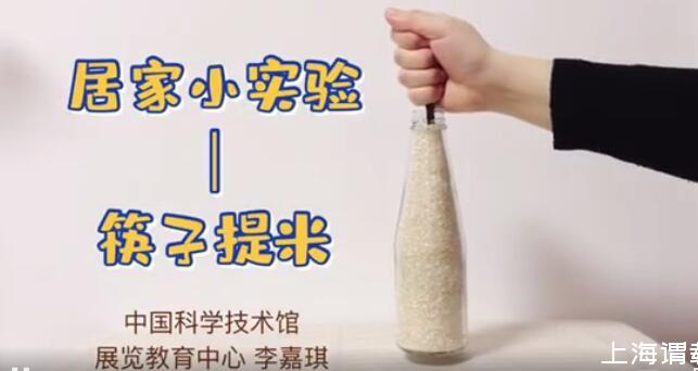 將筷子插入一個(gè)裝滿大米的瓶子中,發(fā)現(xiàn)一根筷子就能提起整瓶大米,這是由于筷子與米之間以及米與米之間的摩擦力很大造成的。