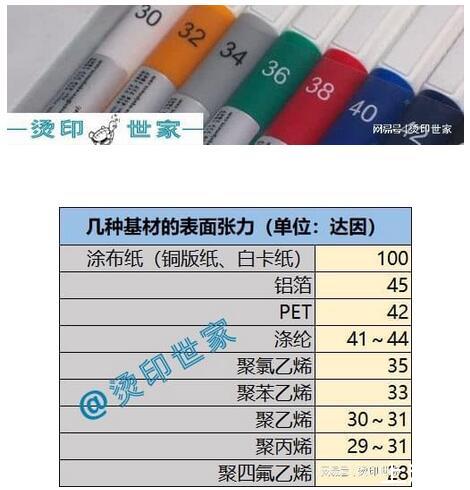 燙印對于承印基材的達(dá)因值要求: