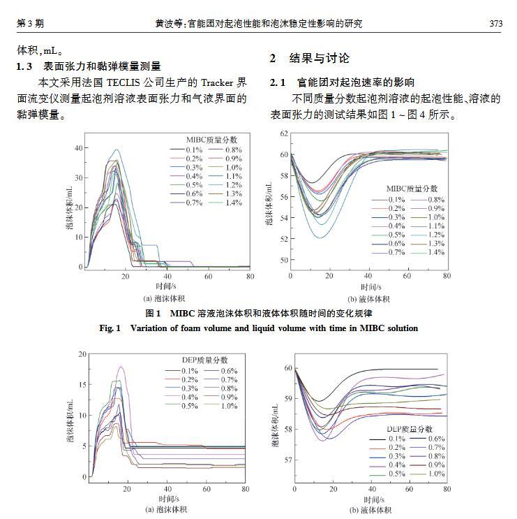 官能團(tuán)對(duì)起泡性能和泡沫穩(wěn)定性影響的研究