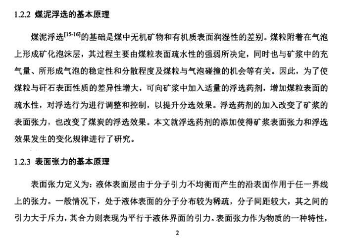為研究浮選效果與礦漿表面張力之間的關(guān)系,對-0.5mm的平朔弱粘煤、馬蘭焦煤和晉城無煙煤進行了浮選試驗,研究表明:煤油或仲辛醇用量適當(dāng)時,隨著藥劑用量的增加,礦漿表面張力降低,可燃體回收率和精煤灰分升高,三者在同一藥劑量時達到極值點,并在相同的藥劑量范圍內(nèi)維持在極值點附近;煤油或仲辛醇用量過大時,隨著藥劑用量的增加,礦漿表面張力回升,可燃體回收率和精煤灰分回落。這一結(jié)果對利用礦漿表面張力來指導(dǎo)浮選藥劑制度、協(xié)助在線控制浮選可燃體回收率和精煤灰分有著重要意義。