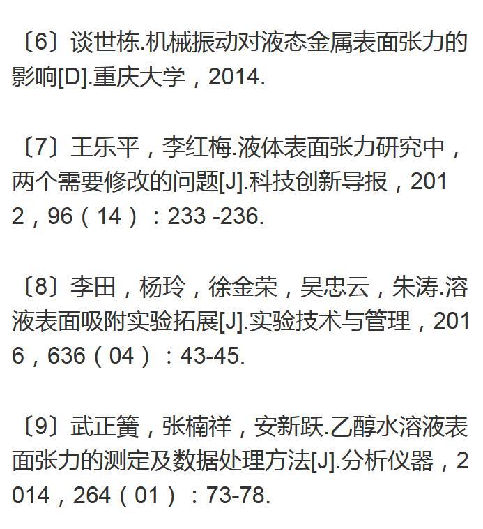 【摘要】:對于最大泡壓法測定表面張力的實驗,我們通過調整冒泡速度對其進行實驗探索。實驗測試了冒泡速度分別為3,5,7,9,11s/個時,乙醇與異丙醇兩種溶液在濃度為10%,20%,30%,40%,50%時表面張力的大小。結果顯示,不同濃度的乙醇與異丙醇溶液,當冒泡速度為11s/個時,這兩種溶液的表面張力值最接近理論值。因此在測定表面張力的實驗時冒泡速度控制在10s/個以上,所得數(shù)據(jù)更精確。通過初步探索為表面張力實驗的教學改進提供了依據(jù)。