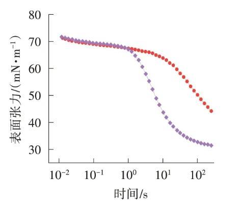 在實(shí)際應(yīng)用中,時間快慢起著關(guān)鍵性作用。比如,在泡沫的生成過程中,表面張力的降低會使液膜更容易形成,同時也會使液膜不容易收縮和破壞,得到的泡沫就比較穩(wěn)定。如果溶液的表面張力下降緩慢,相比之下,液膜擴(kuò)展和破裂的速度快,表面活性劑不能發(fā)揮本身的作用。因此,對于非平衡情況下溶液表面性質(zhì)的研究很有意義。