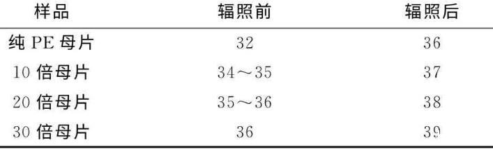 表1不同發(fā)泡倍率母片輻照處理前后的表面張力