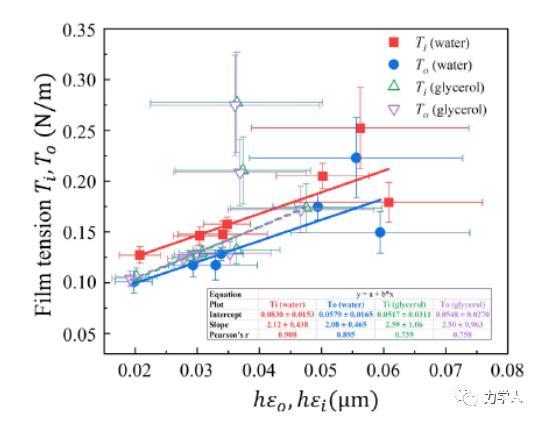 綜上所述,本文基于理論模型揭示了表面張力在調(diào)控液滴-薄膜體系平衡構(gòu)型的作用機(jī)制,首次發(fā)現(xiàn)了薄膜張力隨薄膜鼓包角的非線性解析關(guān)系,以此完善了基于薄膜-液滴體系確定固體表面張力的方案,可用于對高分子材料表面張力的實(shí)驗(yàn)測量和探索高分子材料表面張力與表面能的關(guān)系。