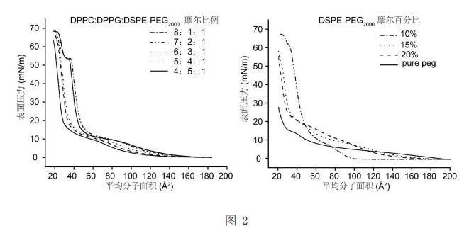 的摩爾百分比為10%時在氣液界面具有最低的表面張力(3mN/m),DPPC:DPPG:DSPE-PEG2000