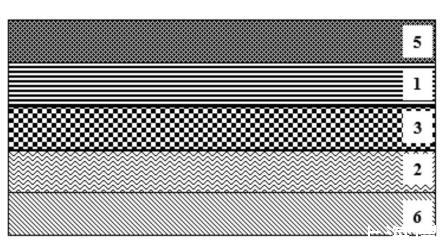 將本實施例的BOPP薄膜用于制備熱復(fù)合基材,通過熱復(fù)合功能層與共聚丙烯材料或/和聚乙烯材料復(fù)合,具體地,本實施例是與石頭紙蜂窩板5熱復(fù)合,復(fù)合后的結(jié)構(gòu)請參閱圖3,復(fù)合完成后,測試復(fù)合效果。復(fù)合方法包括以下步驟:首先在BOPP薄膜的可印刷表層上直接進行耐溫油墨印刷,其中最后一道為耐溫保護光油,形成油墨層6,然后輕度熱壓使薄膜與表面達到一定溫度的石頭紙蜂窩板直接熱壓復(fù)合,熱復(fù)合工藝條件如下:溫度為130℃,封合時間為2s,熱壓壓力為8kg/cm2