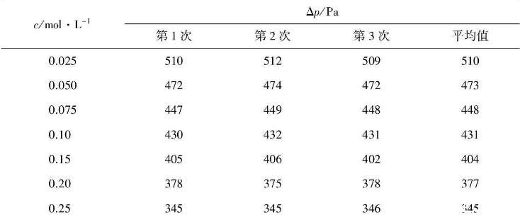 ⑥按照上述方法測(cè)定不同濃度正丁醇溶液的Δpmax值。不同溶液測(cè)定時(shí)須按低濃度到高濃度的次序測(cè)定;測(cè)定每一樣品時(shí)只需要用同樣濃度的溶液淌洗3次即可,并對(duì)測(cè)量數(shù)據(jù)進(jìn)行記錄(例見表1)。