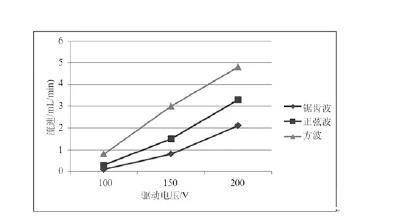 (1)探討壓電陶瓷片在不同波形驅(qū)動下,微泵流速的比較,為驅(qū)動電壓波形的選擇提供依據(jù);