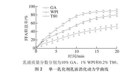 圖2單一乳化劑乳液消化動(dòng)力學(xué)曲線