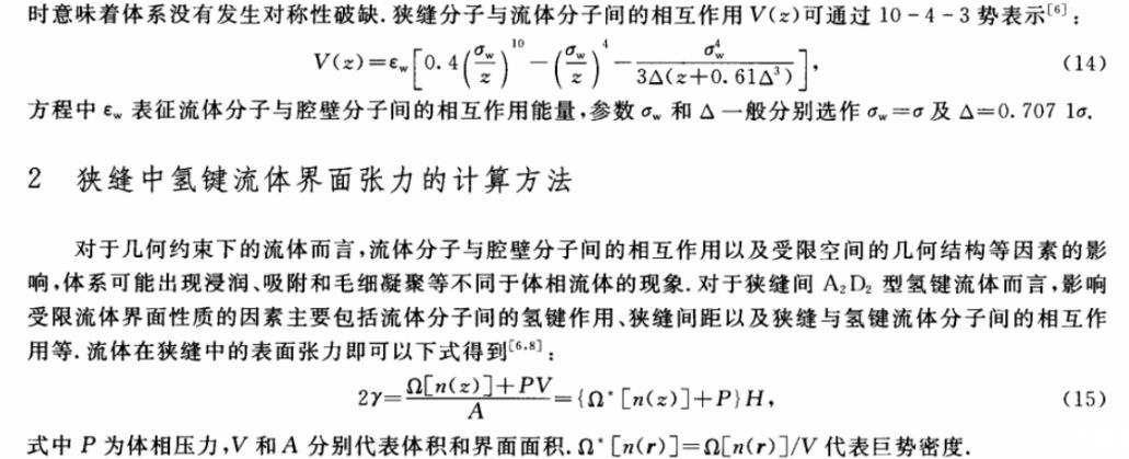 影響?yīng)M縫間氫鍵流體氣液平衡界面張力的因素有哪些(一)