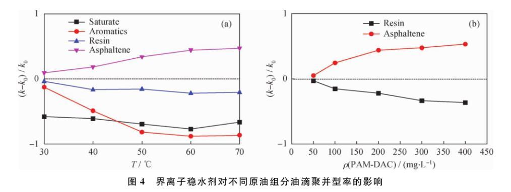 2.2.1陽(yáng)離子清水劑對(duì)原油組分油滴聚并行為的影響