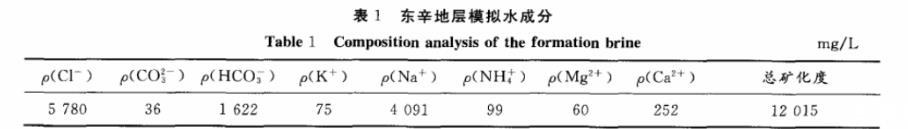 實驗原料為勝利油田東辛采出原油。航空煤油為北京化學(xué)試劑公司,室溫下與重蒸后的去離子水的界面張力約為40 mN/m;實驗用水為經(jīng)重蒸后的去離子水配制的東辛地層模擬水,其主要成分見表1。