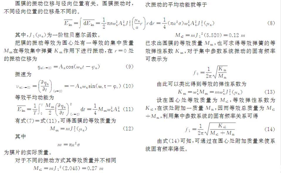 MAMs由一個或多個微小中心質(zhì)量塊粘結(jié)在薄膜上組成的二維周期性陣列結(jié)構(gòu)構(gòu)成。研究表明,衡量其隔聲降噪效果的傳遞損失(TL)與多種參數(shù)相關(guān),包括幾何尺寸、質(zhì)量塊分布、中心質(zhì)量塊質(zhì)量、薄膜厚度和薄膜預(yù)應(yīng)力(表面張力)等微結(jié)構(gòu)參數(shù)?,F(xiàn)有研究對附加質(zhì)量塊非中心布置和多質(zhì)量塊布置的影響有所涉及,但仍缺乏實(shí)驗(yàn)驗(yàn)證。本文在現(xiàn)有成果基礎(chǔ)上,通過有限元仿真與實(shí)驗(yàn)對比,研究由彈性薄膜和質(zhì)量塊構(gòu)成的MAMs的隔聲特性。