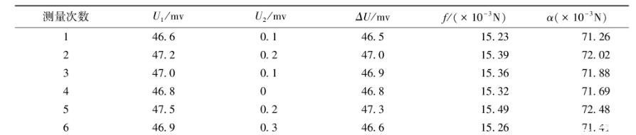 表2原有金屬吊環(huán)測量液體的表面張力系數數據表(水溫25℃)