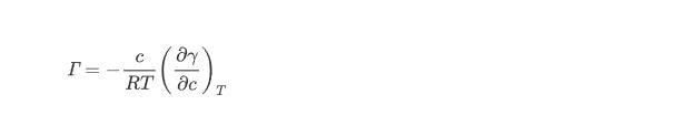 式中,Γ為表面過剩濃度,mol/cm2;c為表面活性劑水溶液濃度,%;R為表面活性劑普氏氣體常數(shù),R=8.315×107;T為溫度,K;γ為界面張力,mN/m;