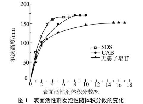 圖1表面活性劑發(fā)泡性隨體積分數(shù)的變化