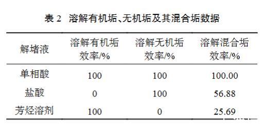 表2溶解有機(jī)垢、無機(jī)垢及其混合垢數(shù)據(jù)