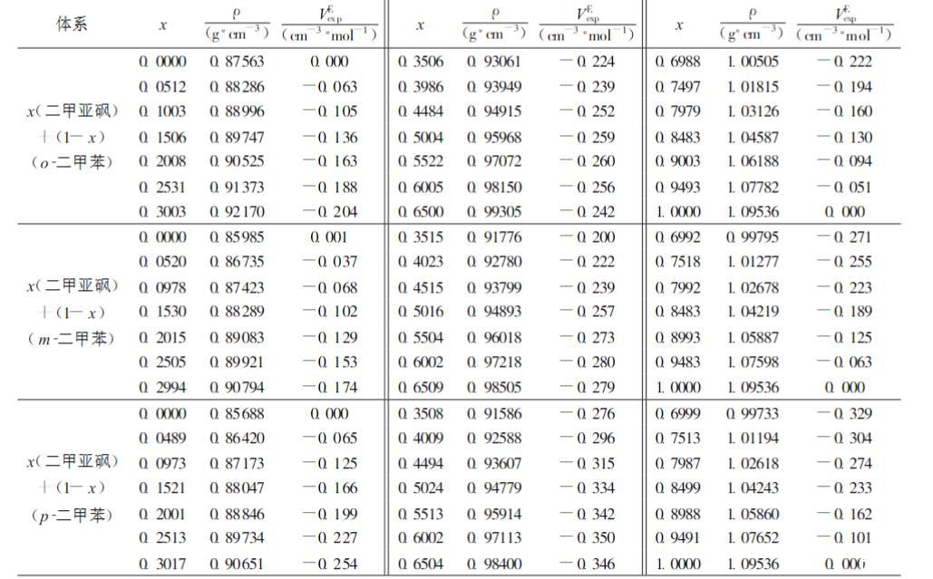 體系 x(二甲亞砜)+(1-x)(o-二甲苯) x(二甲亞砜)+(1-x)(m-二甲苯) x(二甲亞砜)+(1-x)(p-二甲苯)