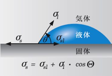 接觸角是指在氣、液、固三相交點處所作的氣-液界面的切線穿過液體與固-液交界線之間的夾角θ,是潤濕程度的量度。