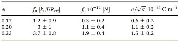 在模擬中,f0以kBT/Reff為單位,這是因為Reff是距離單位,kBT是能量單位。因此,在用物理單位表示f0時,必須考慮T和Reff的不確定性。然而,經(jīng)過誤差分析,我們發(fā)現(xiàn)Df0僅由(Df0)Df的貢獻決定。