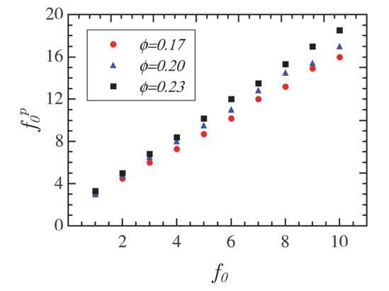 由于點偶極子模型的簡單性,值得尋找兩個模型之間的對應關系。為此,我們確定了一組f0在三個不同面積分數(shù)下的有效相互作用強度f p0。對于感興趣的參數(shù)范圍,可以在圖10中看到f p0和f0之間的關系。該圖有助于選擇適當?shù)膄 p0,以便通過僅基于更簡單的點偶極子模型進行模擬來計算單層的結構特性?;蛘?,如果實驗對相關函數(shù)由點偶極子近似建模,則sffi ep的值可以使用根據(jù)該圖估計的相應f0計算。