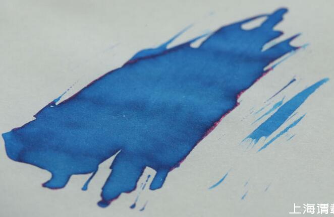 萬(wàn)寶龍的寶馬藍(lán)這款是我日常使用最多的,它在邊緣干透后會(huì)有一層金屬色澤的反光,這就是sheen,藍(lán)色墨水出紫紅色的sheen是相對(duì)比較常見(jiàn)的
