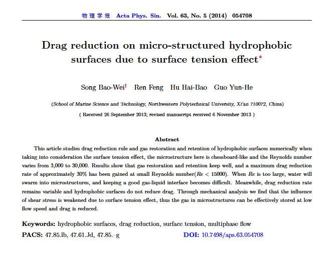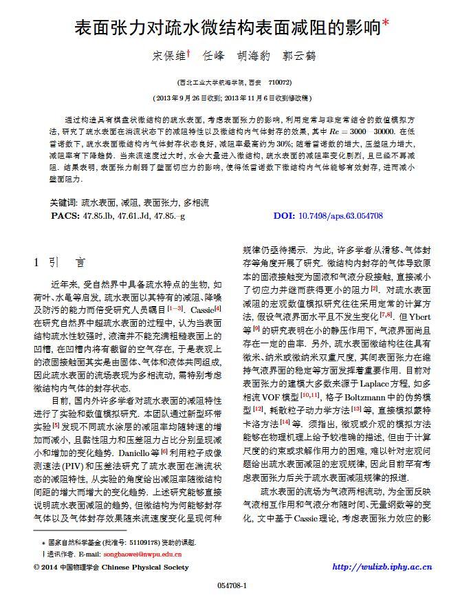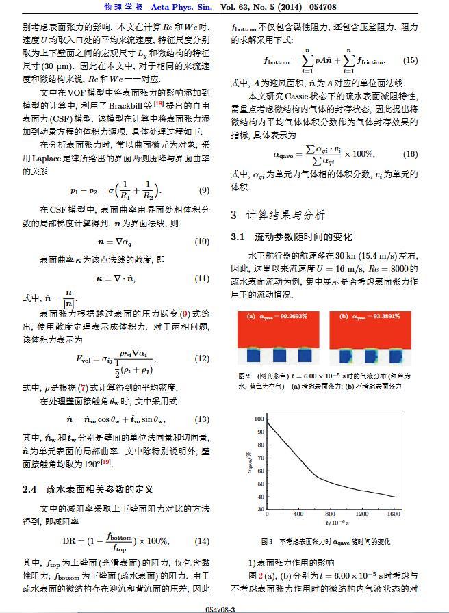 表面張力對(duì)疏水微結(jié)構(gòu)表面減阻的影響