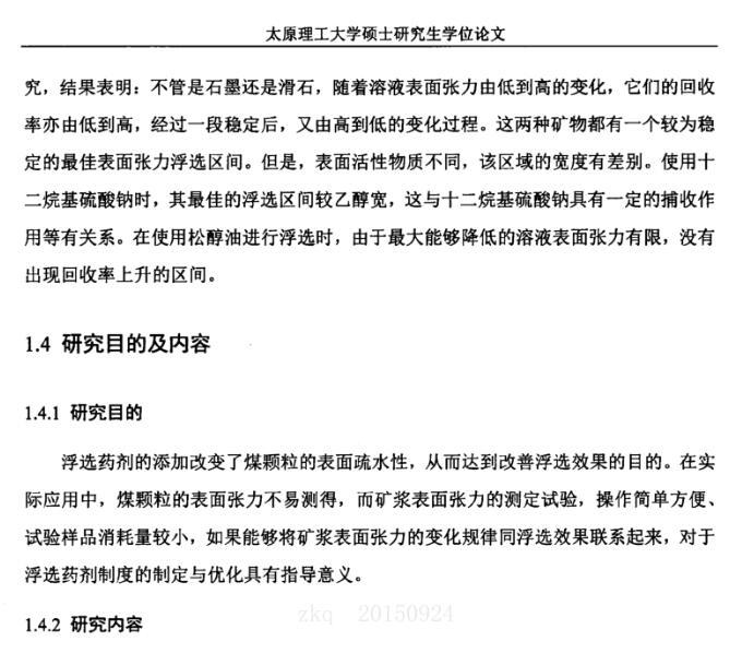 【摘要】:隨著浮選入料中高灰細(xì)泥含量的逐漸增高,浮選效果惡化的問題越來越突出。煤泥浮選是煤炭分選中的重要環(huán)節(jié),合理的浮選藥劑制度是實現(xiàn)煤泥高效浮選的關(guān)鍵因素。本文就浮選效果與礦漿表面張力的關(guān)系進行了研究,對試驗煤樣進行了工業(yè)分析、元素分析、粒度分析及XRD分析,發(fā)現(xiàn)煤樣中小于0.045mm粒級含量較多,且灰分較高,易泥化。煤樣中含有的伴生礦物種類基本相同,主要包括高嶺土、蒙脫石、石英及黃鐵礦四種。